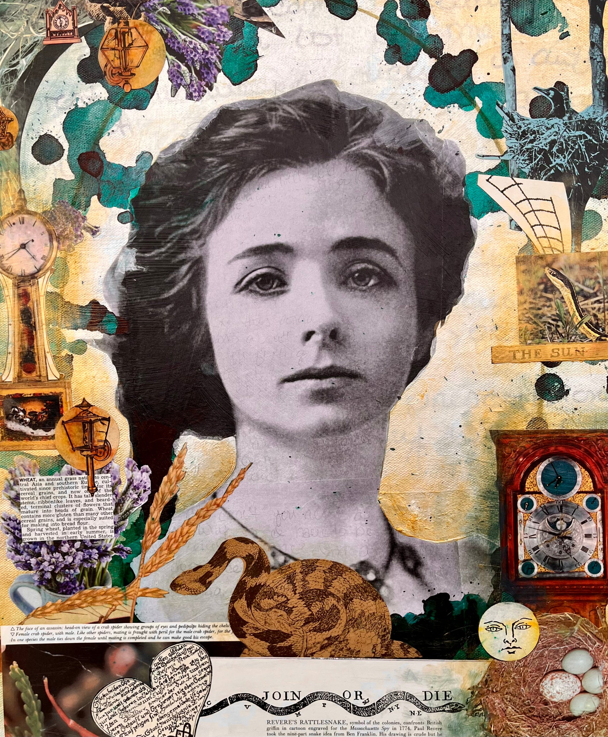 This is an original one of a kind creation, made from various mixed media techniques. Layered and sealed on a 1.5" deep stretched canvas, signed and dated on the back.